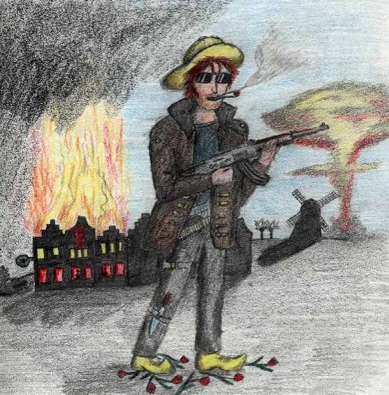 The picture that started it all... take some weird people, let one Dutchie tell "I'll take my AK47, go to the Scheveningen Pier and shoot all them pirates from the North Sea!", and the foreigners will drown you in the crazy stuff they know about Holland - enough to write a novel about, and so I did.