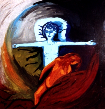 There is not much to tell about this one. It was an image in my mind I wanted to paint, and I did after some months. It's all about contrasts: warm/cold, square/sphere etc.