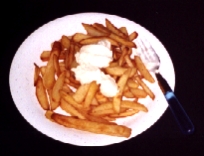 ![]() FoodDutch food is scarce after the Great Flood and the Double Dutch War. Hunger is a common problem, starvation the cause of death for many inhabitants. Nevertheless, there are some sources of food left:Snert: The famous frysian Pea soup is still cooked in the rural areas where there are still plenty of vegetables, herbs, peas and sources of meat to chop into the soup. Potatoes: Hard to hunt, but still a great meal, cooked, baked or fried. When fried as roughly cut pieces, they are called fries. Any recipe involves a lot of mayonnaise. (see picture) Rye bread: Rye is the only kind of wheat growing in Holland and it makes an excellent dark kind of bread. Its bread of the kind that never ends... Cheese: of course, cheese is common on the Dutch table. There are all kinds of cheese, old and young, with herbs or not, with extra life on it or not... As a rule, cheese stays edible until it walks away.Tulip bulbs: raw or toasted slices, the tulip bulb has become the national food for the common people. Rat: the rats terrorising society are also a source of food. Killed and well grilled, they are delicious to the starving. (see also: Living... things) Two basic drinks form the daily source of wet nutrition in Holland. Of course, drinking water would be do-it-yourself euthanasia (and you have to pay tax for that) so the Dutch do it with Jajem and beer. Jajem comes traditionally from Black Jajem City, and has over 40% alcohol in it. It serves well as ingredient for a Molotov cocktail. Beer comes from many places, but Sweetwood produces the best. Beer is sold in green cans. The rich Dutchmen have dinner outdoors at Le Faye Beau, which is a restaurant that servers all above mentioned food and more in a traditional surrounding. |